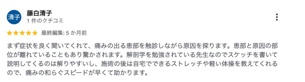 柿沼先生の施術は、その場しのぎで一時に痛みを和らげるものではなく、根本原因に対して施術をしていくものです。痛みの再発が少ないのが特徴的です。
